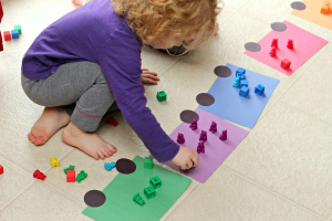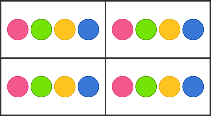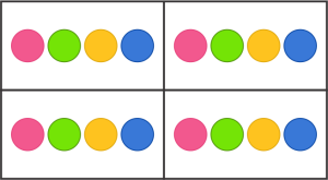 Concrete: This might be performed by grouping blue and yellow blocks together or splitting eight candies among four friends. No need for them to imagine!